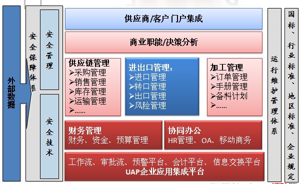 用友外贸行业全面解决方案是企业整体解决方案,应用范围不仅是简单的单证、合同管理,能够实现国际贸易业务与国内贸易平滑衔接,从而打通企业的管理链条,避免数据孤岛, 为企业管理者提供最及时、准确的决策依据