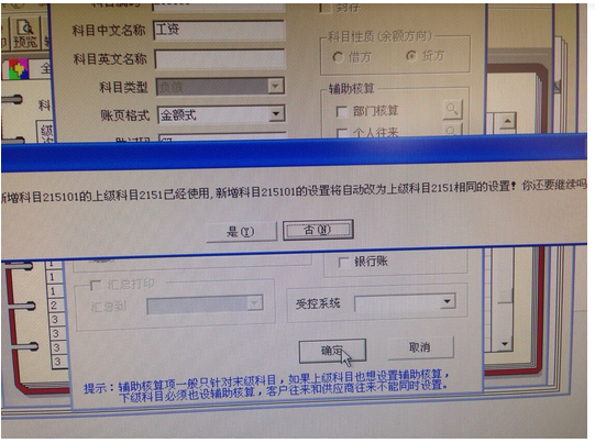 点击是继续增加,如果不能增加,重新登录软件,然后点击基础设置-财务-会计科目,点击增加,输入编码进行增加科目;不要进入总账模块,要求账套主管操作