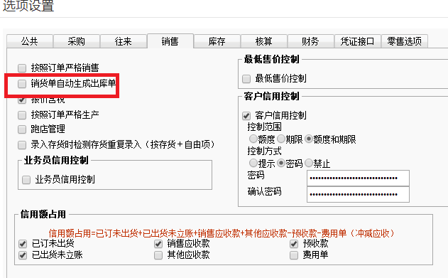 小明:“当然也可以呀,你再看上面那张图,左边有个【可用量控制】,把销货单前面打上勾就行了,并且建议勾上【销货单自动生成销售出库单】,这样仓管员没审核的话这部分存货就一直保留在仓库中,审核后就表示客户已经取走了商品。“