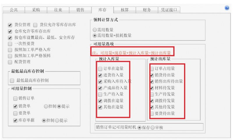销售订单,订单记可用单的时机可以是保存和审核,选择其中一个,按照选择时机来进行减少可用量;