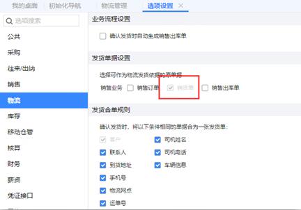 一.在畅捷通T+标准版【系统管理】-【选项设置】中选择【发货单据设置】,该设置在发货时作为发货的依据,确认发货时,把发货信息回填至销售订单,销货单,或者销售出库单,我们以销货单为例。